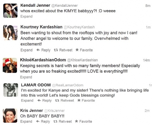 Пикантность ситуации придает то, что Ким до сих пор считается официально замужней дамой. Она еще не получала развод с Крисом Хамфрисом. Как бы то ни было, все многочисленное семейство в восторге от этой новости, и вовсю дают об этом понять в твиттере, высказываясь о том, что счастливей их нет людей на земле.