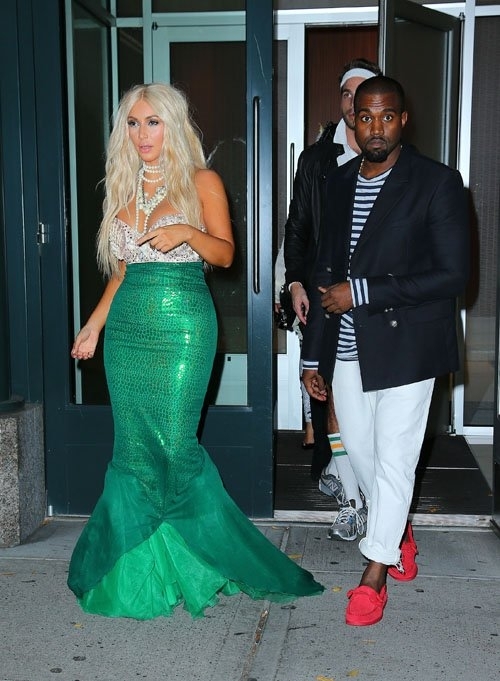 Звезды продолжают нас радовать своим разнообразиям костюмов для Хэллоуин. Так в субботу вечером Ким Кардашян была замечена в костюме русалки. Звезда реалити-шоу приняла участие в нью-йркской вечеринке вместе со своим парнем Канье Уэстом, который был одет в костюм капитана.