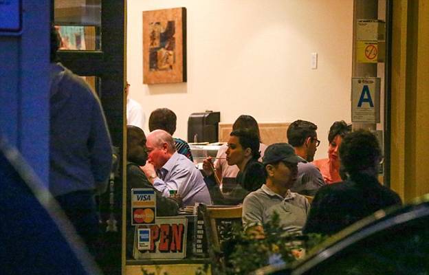 Ким Кардашян и Канье Уэст вынуждены ждать под популярным рестораном суши, когда освободится место