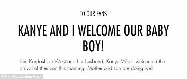 Рано утром в субботу Ким Кардашян родила сына. Об этом сообщил представитель пары на ее веб-сайте kimkardashianwest.com: "Ким Кардашян и ее муж Канье Уэст приветствовали прибытие своего сына рано утром. Мать и ребенок чувствуют себя хорошо".