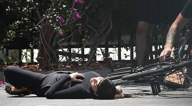 Однако ей они не удавались, и 33-летняя женщина даже умудрилась упасть с велосипеда.