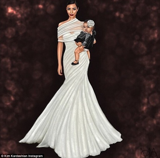 По слухам, Ким и Канье распишутся на этой неделе. Между тем Ким на своем твиттере выложила рисунок-снимок, на котором она в свадебном платье с Норд на руках. Вполне возможно, что именно в нем она станет замужней женщиной.