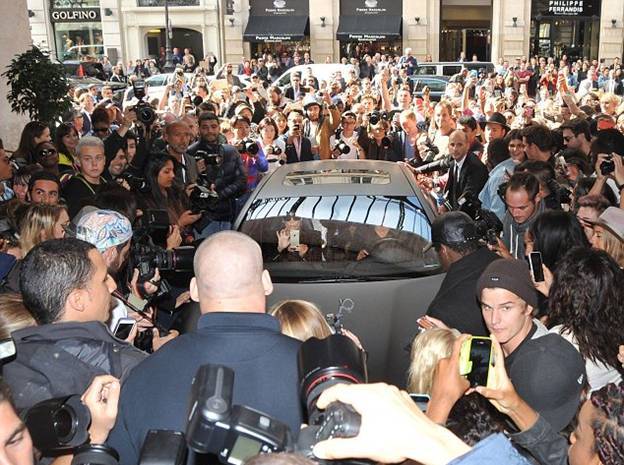 Ким Кардашян и Канье Уэст в нарядах из последней коллекции Balmain покинули свой парижский отель Royal Monceau, чтобы посетить модный показ этого бренда, где в качестве модели выступила сестра Ким Кендалл Дженнер. Прибыв к месту проведения шоу, они столкнулись с настоящим безумием. Все здание было окружено толпой папарацци и зеваками, в первых рядах которых стоял небезызвестный Виталий.