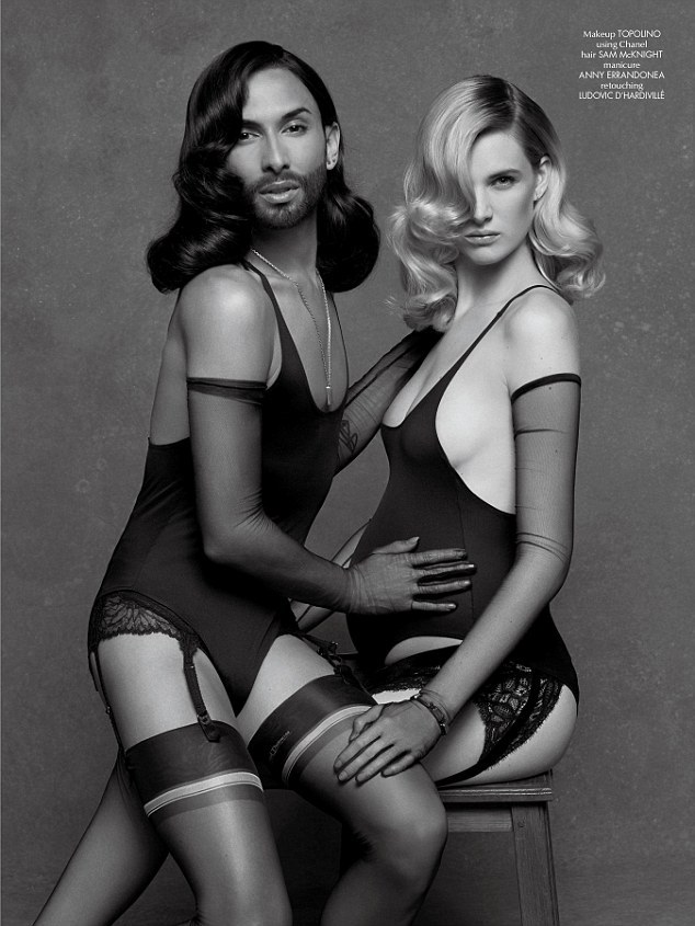 Победитель Евровидения Кончита Вурст снялась для новых страниц CR Fashion Book, где продемонстрировала нижнее белье Givenchy. Фотографировал ее известный модельер Шанель Карл Лагерфельд