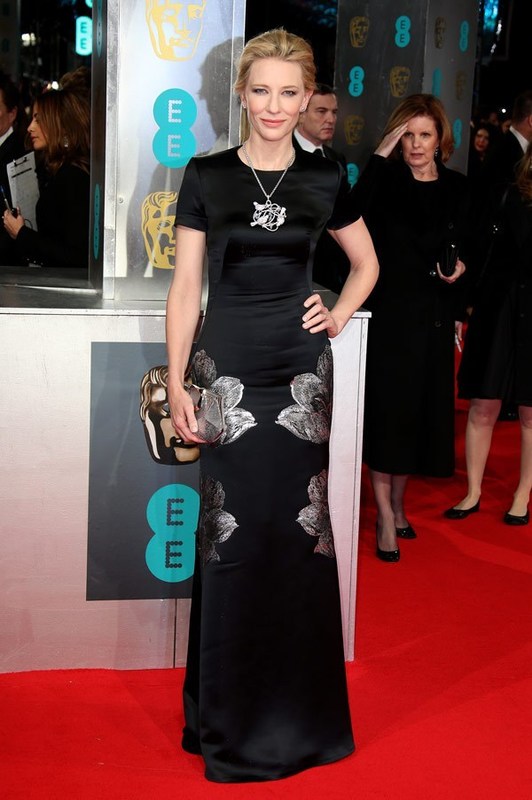 Среди присутствующих выделилась Кейт Бланшетт. Актриса была элегантна, как всегда на красной ковровой дорожке в черном платье с короткими рукавами от Alexander McQueen с утонченным узором в виде серебристых цветов.