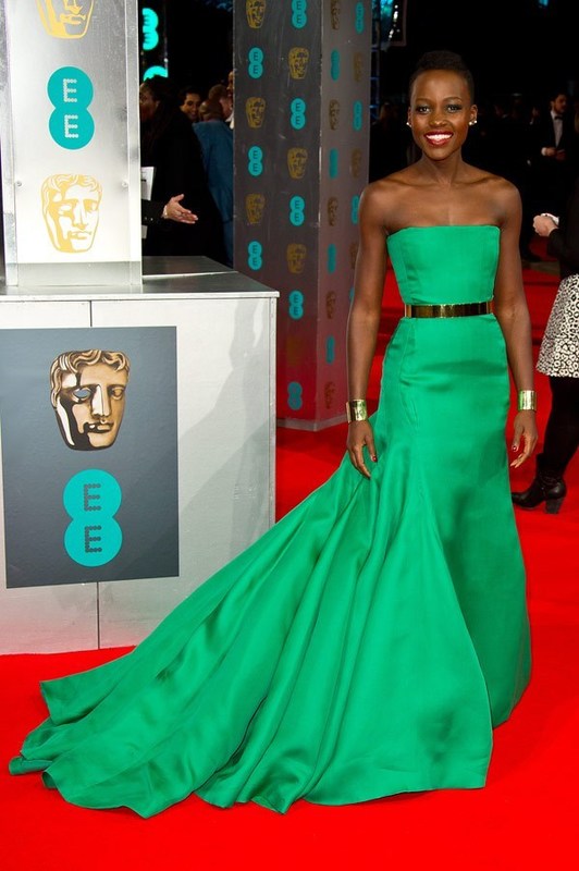 Одной из первых на красной дорожке появилась Лупита Ньонго, поразив своим великолепным изумрудно-зеленым платьем от Christian Dior, которое она подчеркнула золотыми браслетами и металлическим поясом в тон.