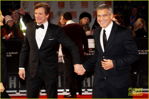 Колин Ферт со своей женой Ливией и Джорджем Клуни.