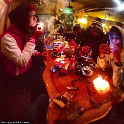 И всю ночь, до 9 утра вторника, вместе со своими друзьями 23-летний певец провел в одном из баров города, где тупо курил коноплю.