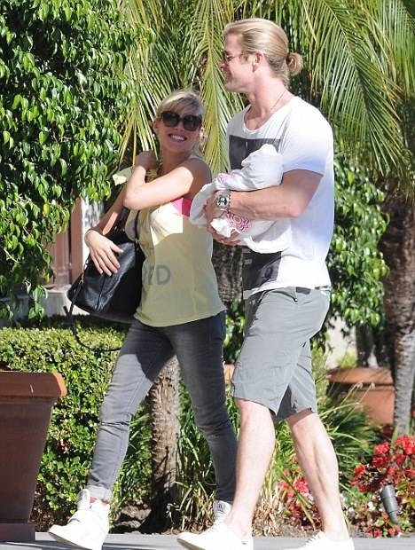 Вчера днем Крис Хемсворт и Эльза Патаки гуляли вместе со своей любимой дочерью Индией в Санта-Монике. Двухмесячная дочь актеров в своем возрасте уже успела побывать в Лондоне и Испании.