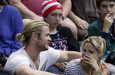 Это спортивная феерия, которая захватила весь мир, и многие знаменитости хотят в полной мере участвовать в ней. Крис Хемсворт вместе со своей женой Эльзой Патаки были замечены в Лондоне, где приобщались к олимпийским играм 2012.