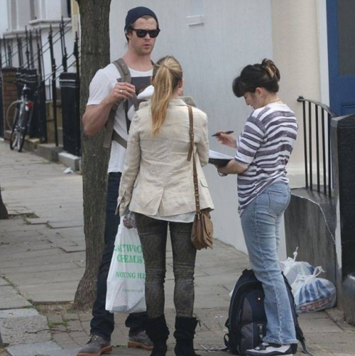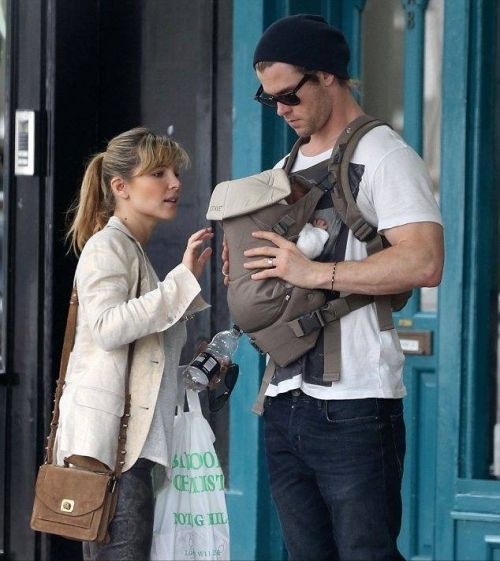 В начале недели Крис был замечен в Лондоне вместе со своей женой, Эльзой Патаки, и дочерью, которую он нес в кенгуру, на своей груди.