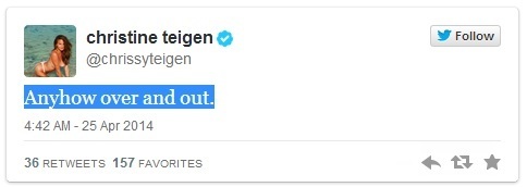 Наконец, в этом суть мудрых слов Крисси Тайген: "Убедись и "отвали" ("Anyhow over and out").