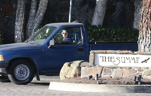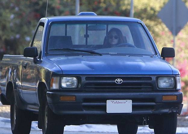 Кристен едет впереди на своем пикапе, а Роб за ней на своем внедорожнике Jeep
