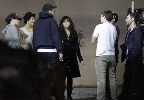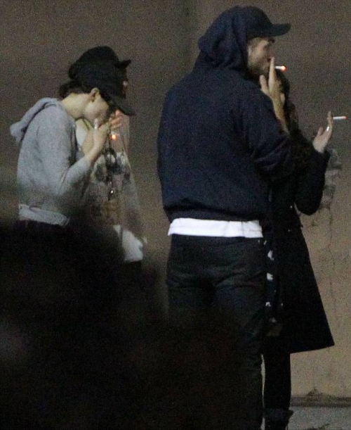 Пара была замечена в своей повседневной одежде, когда вышла покурить в перерыве во время съемки с поп-звездой. Вместе с ними были и другие молодые люди, которые по-видимому задействованы в этом проекте.