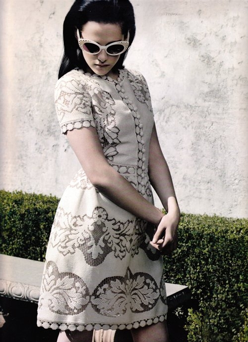 22-летняя актриса выглядела очень трогательно и нежно в свитере Сандерс Джил и платьях от David Slijper.