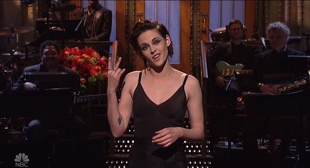 Кристен Стюарт впервые посетила юмористическую передачу "Субботним вечером в прямом эфире" (Saturday Night Live - SNL). На съемках звезда сумеречной сани поведала, как Дональд Трамп был одержим ней и Робертом Паттинсоном пару лет назад. "Я немного нервничаю, возможно, президент смотрит сейчас на меня и я не думаю, что я ему нравлюсь", — сказала Стюарт.