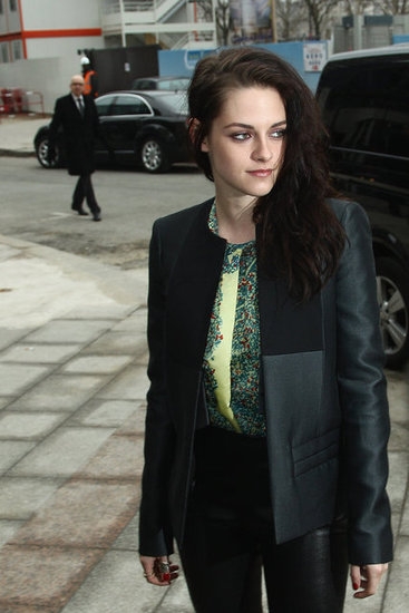 Сегодня Кристен Стюарт была замечена в Париже. Молодая актриса приехала на Наделю моды, которая началась в столице Франции. Кристен была одета в сексуальные кожаные штаны и сидела в первом ряду на шоу бренда Balenciaga.