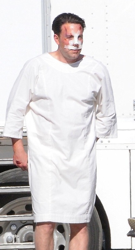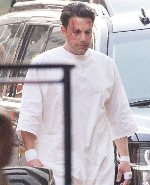 У актера было несколько порезов на лице, перебинтованный нос. В кровоподтеках и синяках на съемочной площадке Бен Аффлек выглядел достаточно реалистично. Со стороны, действительно, казалось, что его избили, так как глаза были опухшие, а костяшки пальцев выдавались вперед, круглые, сбитые, они кровоточили.