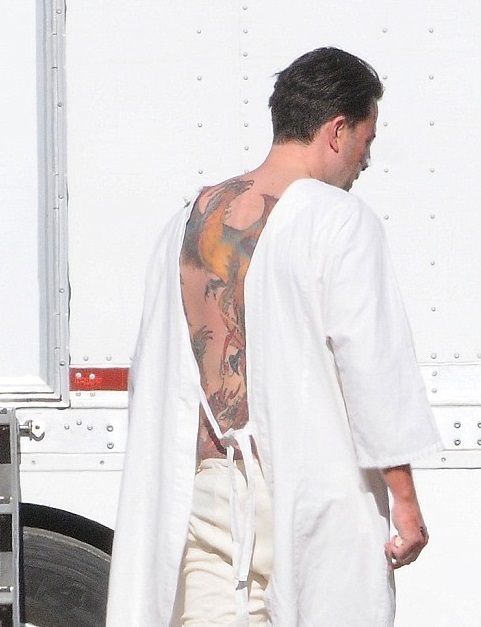 Cледует отметить, что папарацци сняли удачный кадр, на котором видно огромный боди-арт голливудского актера.
