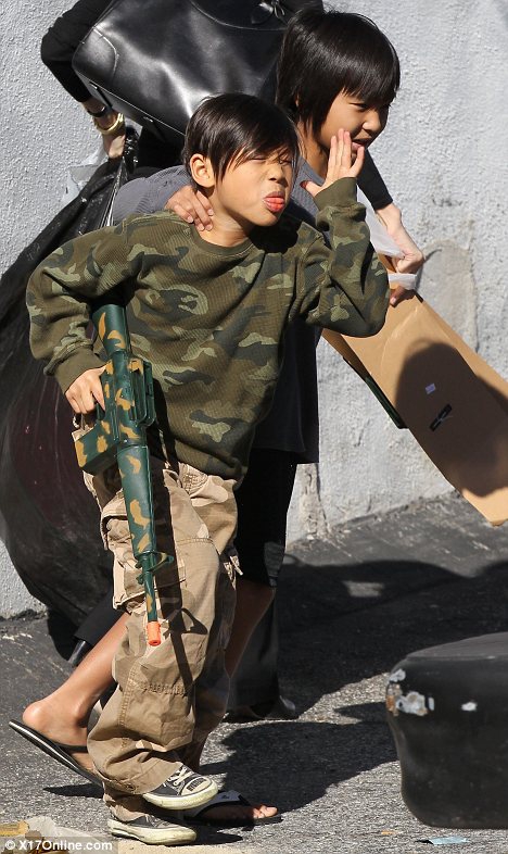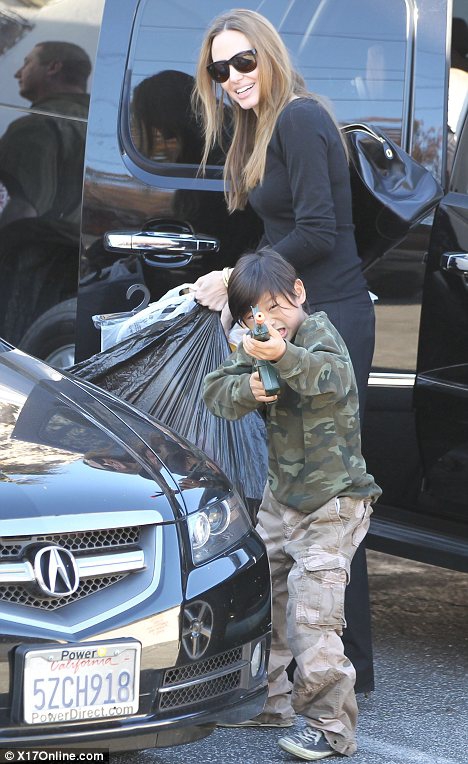 И теперь 36-летняя Анджелина Джоли, взяла десятилетнего Мэддокса и восьмилетнего Пакса и купила им игрушечные винтовки.