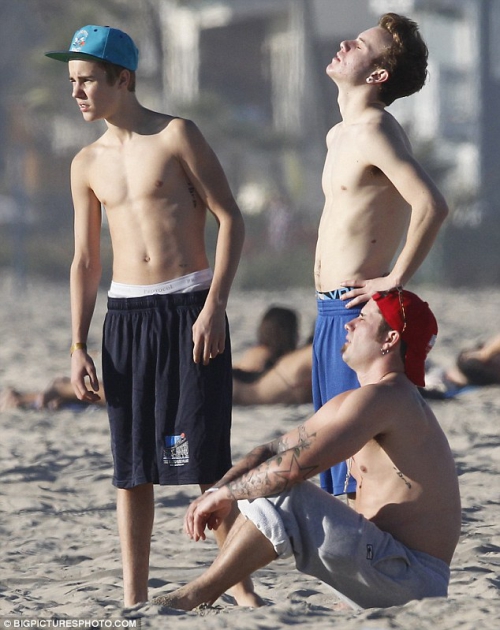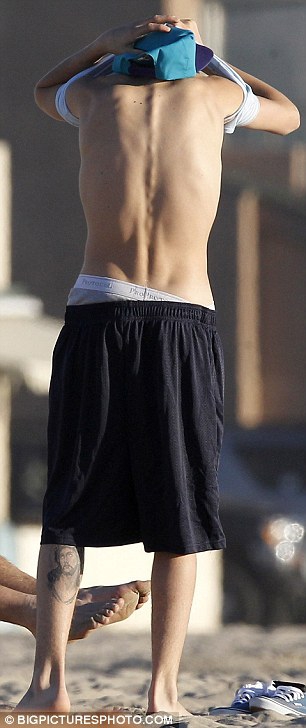 Джастин Бибер был на пляже в Лос-Анжелесе, где у него заметили новую татуировку на левой голени.