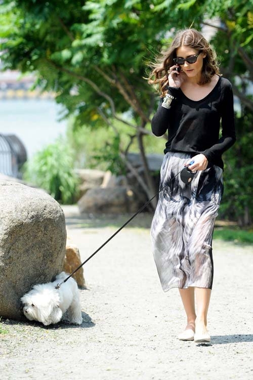 Оливия Палермо, в первый день лета, была замечена, гуляющей по Нью-Йорку, в районе Бруклинского моста. Актриса выгуливала свою собаку и болтала по телефону.
