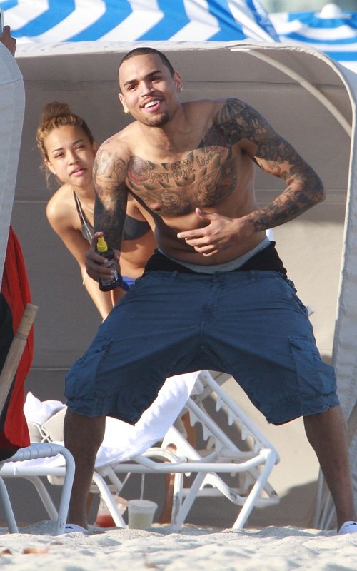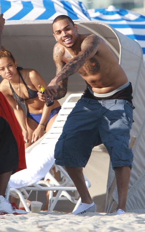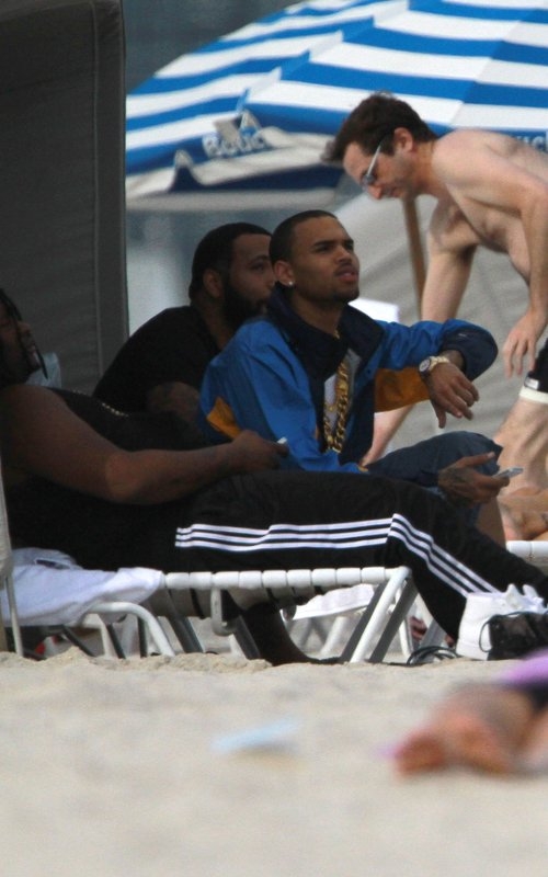 17 февраля на солнце с друзьями, Крис Браун веселится на пляже в Майами, штат Флорида.