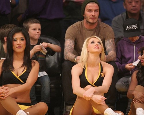 Дэвид Бекхэм и его сыновья Бруклин, Круз и Ромео смотрят игру Лейкерс в Лос-Анджелесе вечером в пятницу.