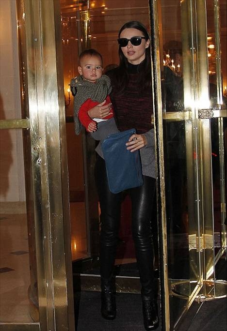 Стильно одетая мамочка Миранда Керр была замечена выходящей со своего отеля в Париже с сыном Флинном, который выглядел под стать ей с вязанным свитером на плечах.
