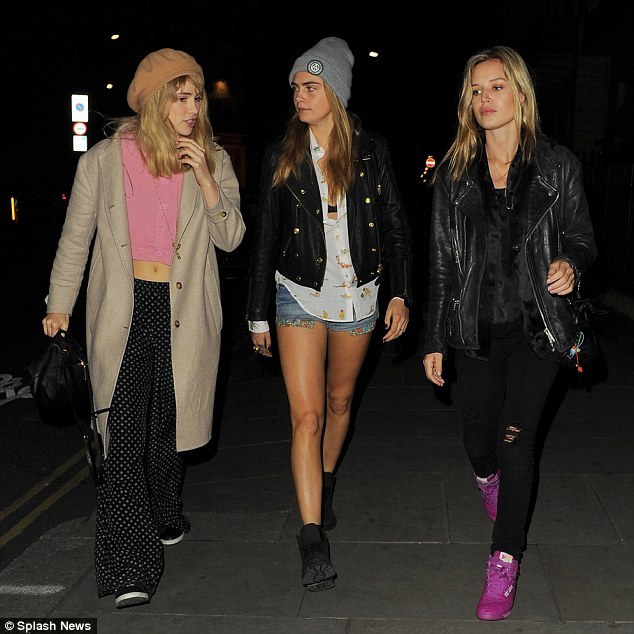 Модель Суки Уотерхаус наслаждалась общением с подругами: Джорджией Мэй Джаггер и Карой Делевинь в субботу вечером в Лондоне.