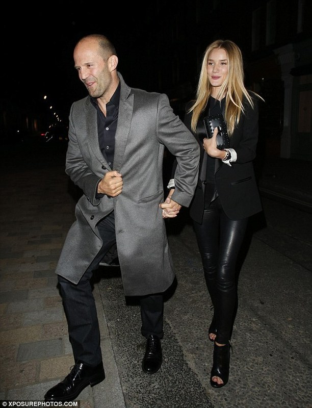 Рози Хантингтон-Уайтли и ее кавалер Джейсон Стэтхэм были замечены, идущими рука об руку по дороге домой из популярного лондонского ресторана в субботу вечером.