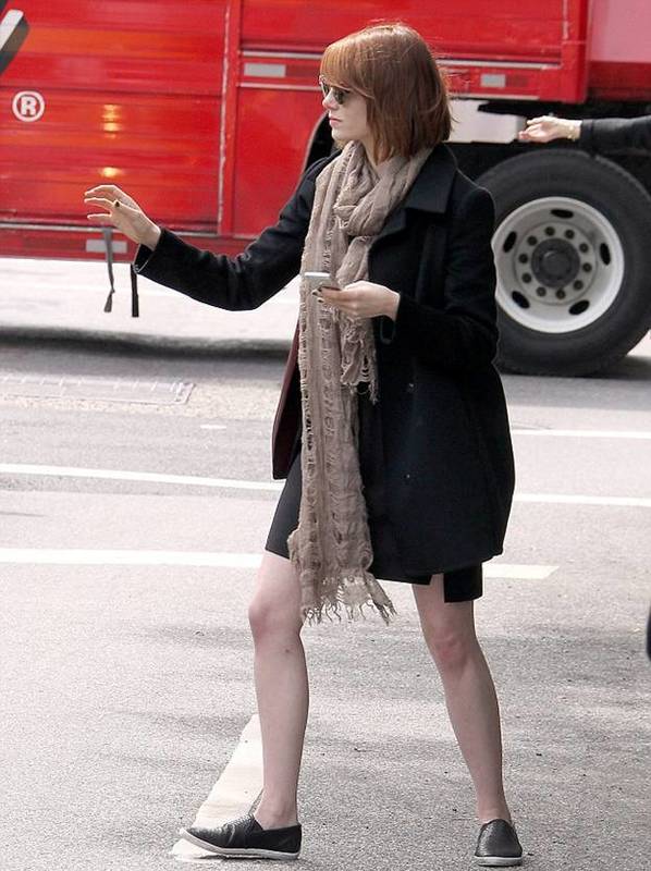 Эмма Стоун в четверг была замечена в Нью-Йорке, когда на Парк-авеню тормозила такси.