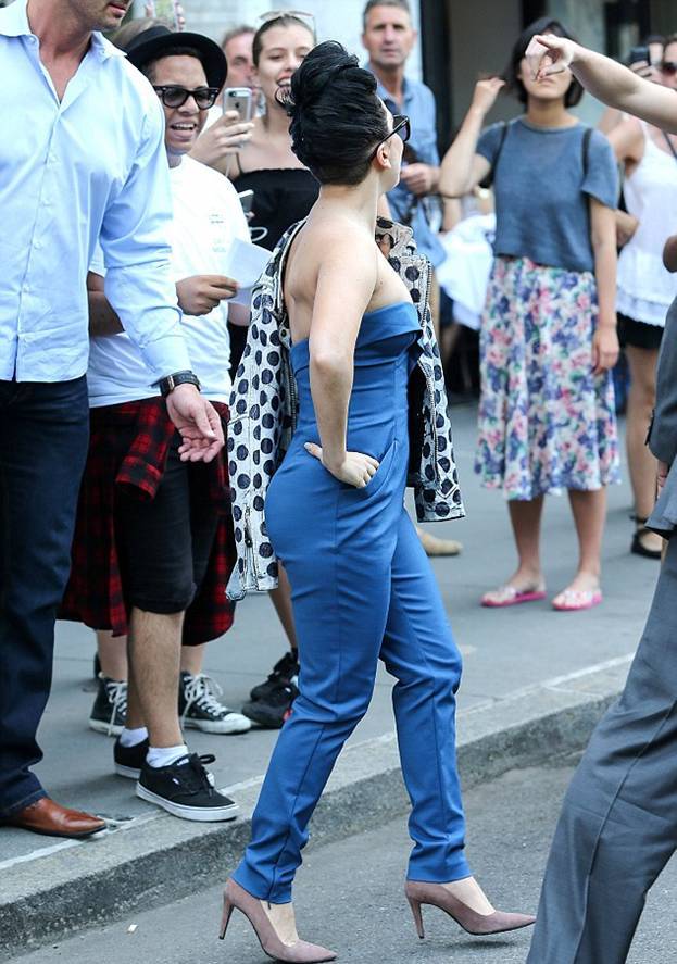 Мы привыкли, что как правило она предпочитает носить вызывающие наряды, которые привлекают взгляд. Однако в субботу Леди Гага решила немного изменить своим вкусам и одела обычный синий комбинезон.
