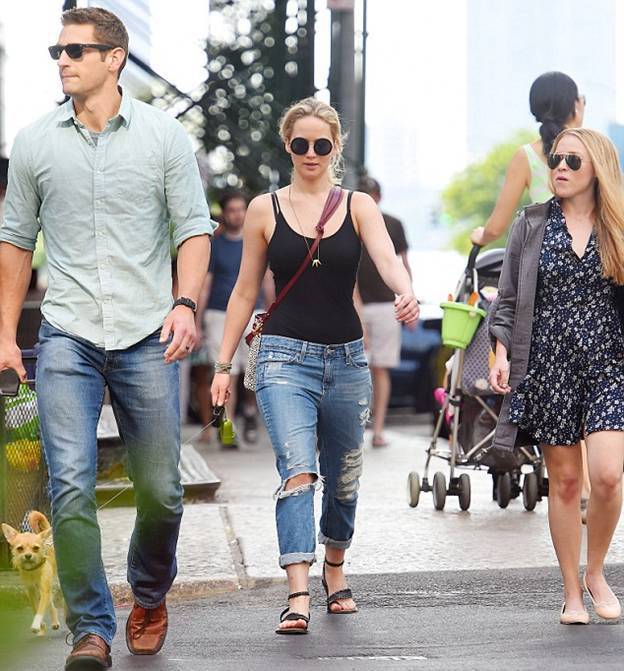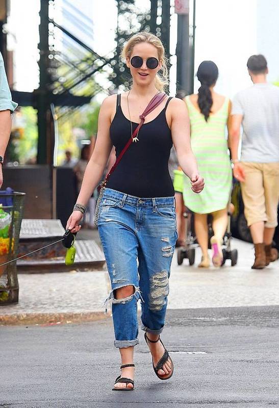 Дженнифер Лоуренс в понедельник была замечена в Нью-Йорке, когда выгуливала свою собаку.