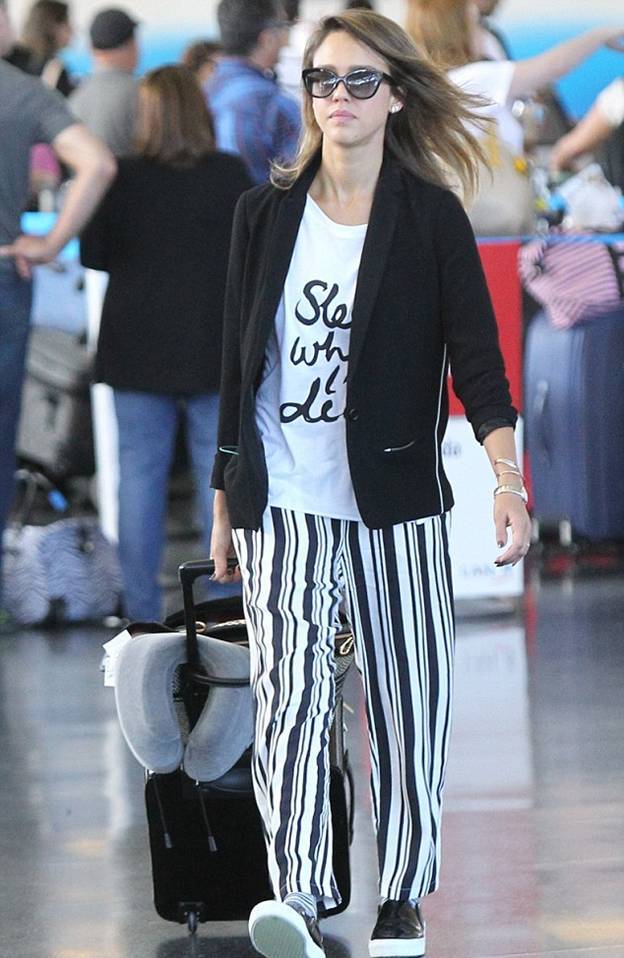 Джессика Альба была замечена в аэропорту Нью-Йорка, куда прилетели из Лос-Анджелеса в понедельник.
