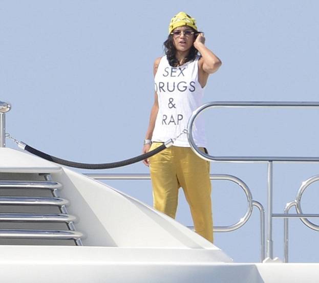 Зак Эфрон и Мишель Родригес продолжают свой отдых на Ибице в компании Джастина Бибера. Их заметили в понедельник на яхте поп-звезды.