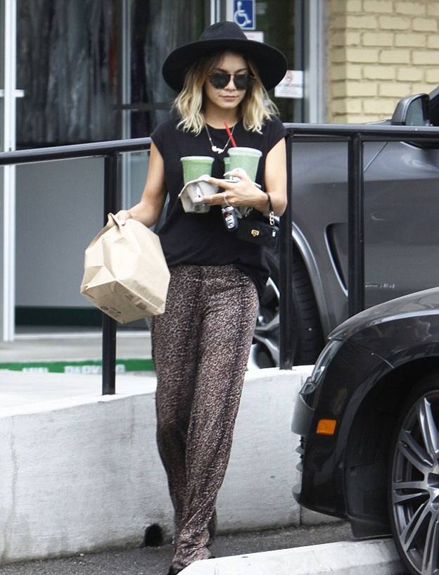 Ванесса Хадженс была замечена в воскресенье в центре Лос-Анджелеса, когда покидала кафе здорового питания, где взяла еду на вынос.