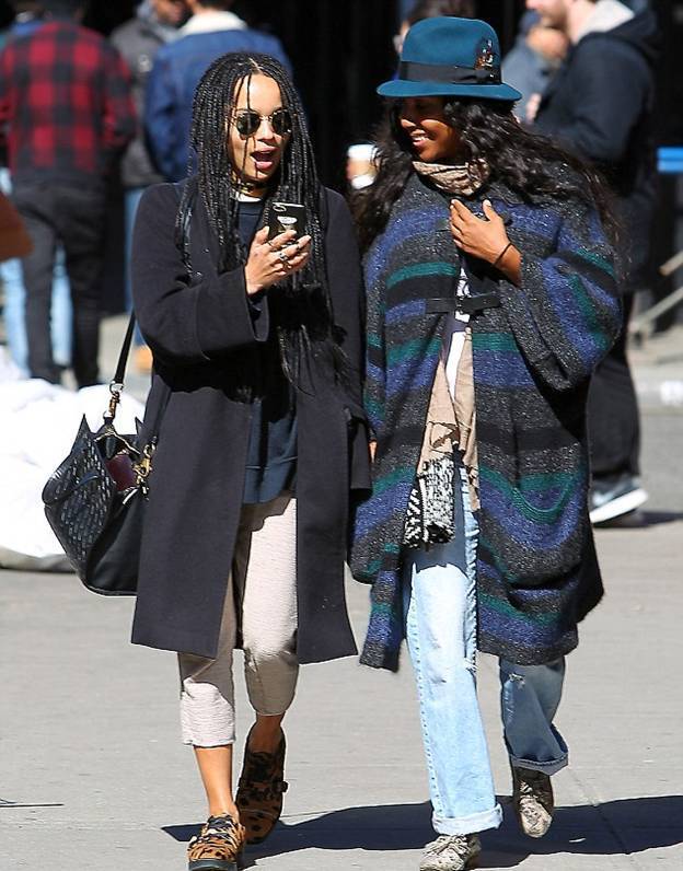 Зои Кравиц была замечена на прогулке по Нью-Йорку со своей подругой первого апреля.