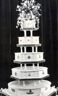 кусок от 1986 года со свадьбы принца Эндрю и Сары Фергюсон и кусок от 1973 года от торта со свадьбы принцессы Анны и капитана Марка Филипса.
