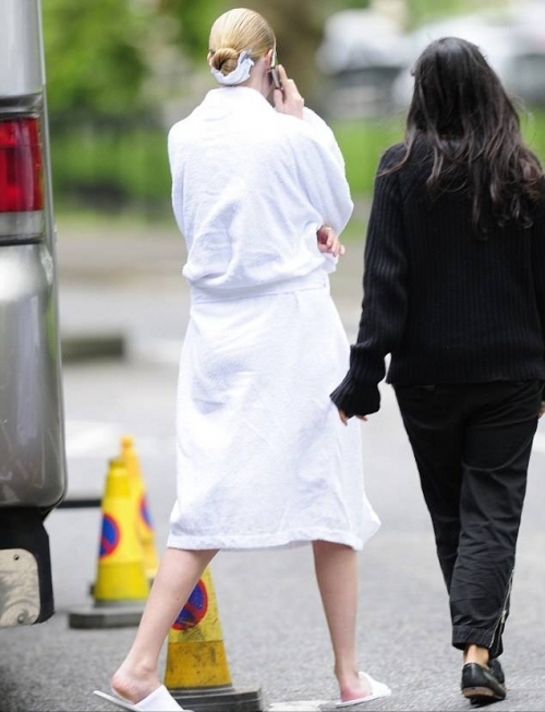 Фотосессия проходила в одном из парков столицы Англии целый день, и Лара несколько раз переодевалась, в перерывах между съемками ходя в белом халате.