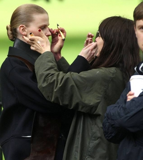 С первого взгляда казалось, что на супермодели нет ни капли макияжа, но судя потому, как над ней колдовал визажист, это мнение было ошибочно.