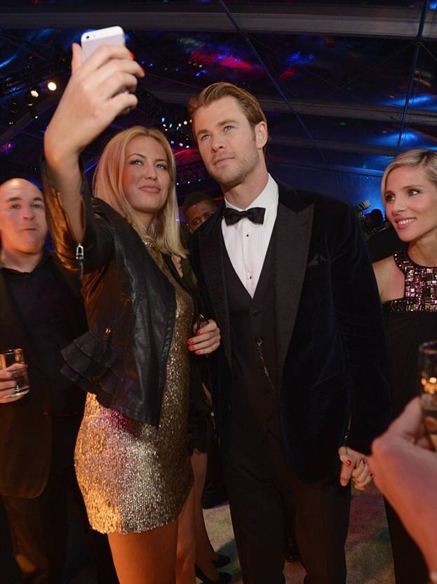 Крис Хемсворт также был с женой Эльзой Патаки, но это не остановило его поклонниц в их желаниях с ним сфотографироваться.