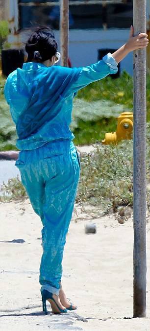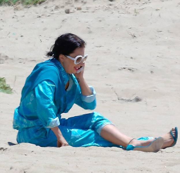 В среду певица была замечена на побережье Малибу. В ходе прогулки она решила не снимать свои босоножки на каблуках. Разговаривая по телефону, она их просто методически вытаскивала из песка.