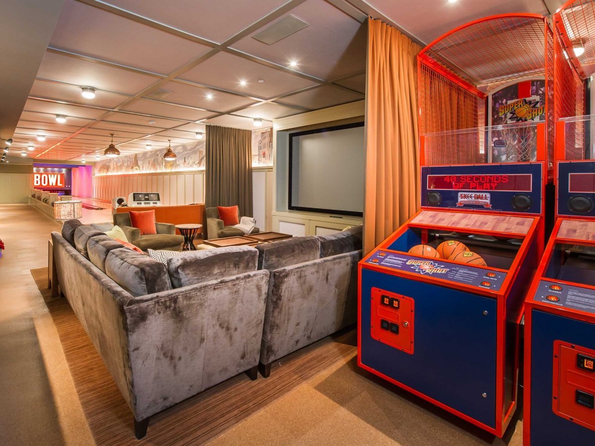 Роскошная недвижимость с замаскированным входом, расположилась на шести сотках земли и может похвастаться 5 спальными комнатами, 12 ванными комнатами, лифтом, бассейном, тренажерным залом, винным погребом, 2 дорожками для боулинга, автоматами для игры в баскетбол, конюшней на восемь лошадей и выходом к морю.
