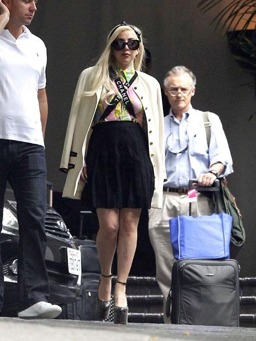 В четверг, Леди Гага была замечена в аэропорту Лос-Анджелеса, где производила посадку на борт частного самолета. Видимо поп-звезда услышала критику в свой адрес по поводу скудности своих последних нарядов, которые состояли всего лишь из колгот и нижнего белья, и решила одеться более консервативно.