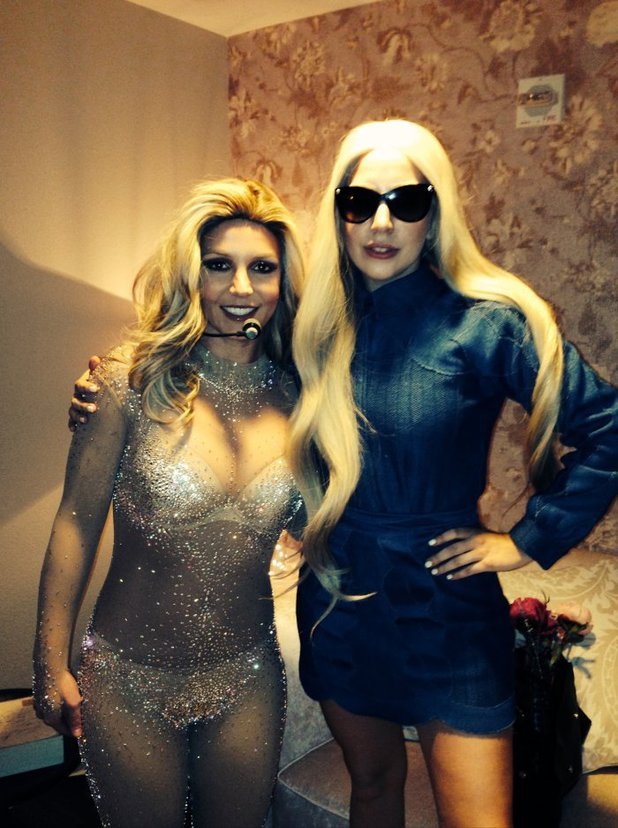 Во время выступления Бритни Спирс на шоу «Piece Of Me» в Лас-Вегасе среди гостей была замечена Леди Гага вместе со своим бойфрендом Тейлором Кинни (Taylor Kinney). "Богиня Любви" пришла посмотреть на шоу и заодно поддержать свою подругу.