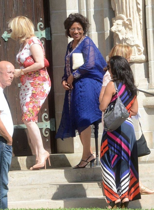Мать спортсмена, Долорес Джордан, выглядела счастливой в дверях церкви