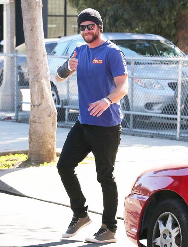 Лиам Хемсворт получил травму правой руки. В пятницу 25-летний актер был замечен в районе Санта-Монике с фиксирующей повязкой на руке. Он со своим помощником направлялся в местный врачебный кабинет.