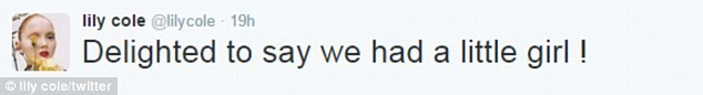 Известная британская модель Лили Коул родила своего первого ребенка - дочь Валди. Малышка родилась в пятницу, об этом в твиттере сообщила сама молодая мамочка, разместив фотографию руки новорожденной дочери и написав: "Очень рада сообщить вам, что у меня маленькая девочка".