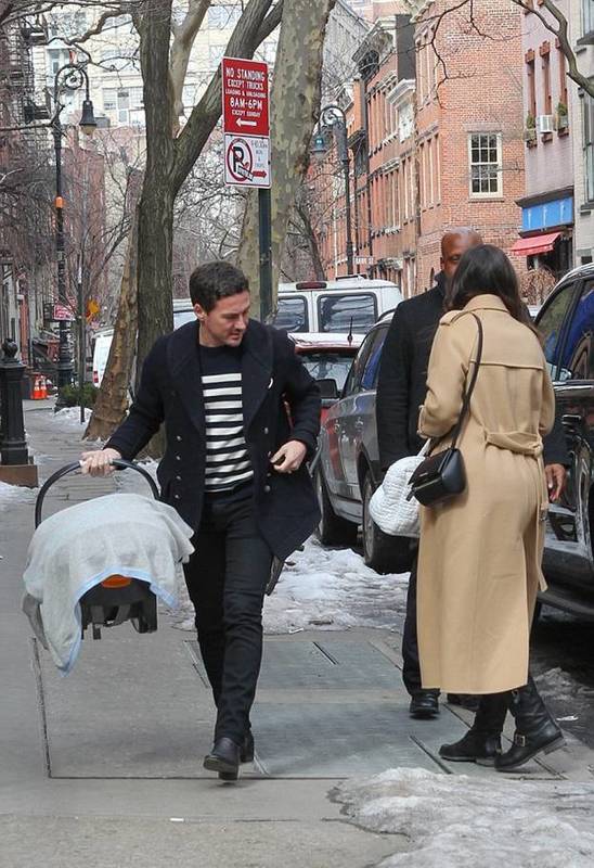 Ее с сыном Сейлором и бойфрендом Дэвидом папарацци сняли как раз в тот момент, когда они приехали домой из больницы.